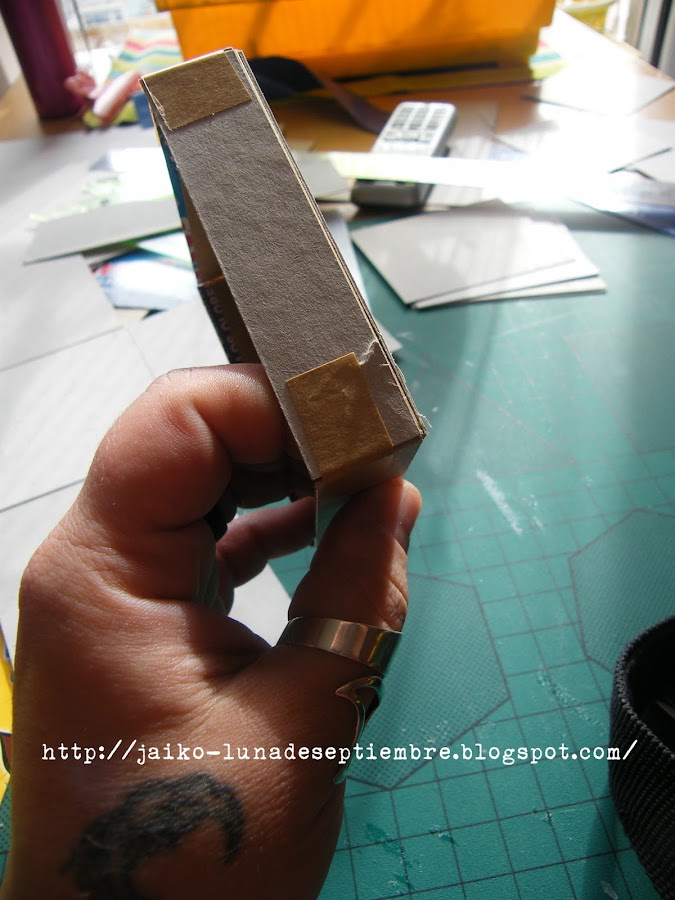 Una vez pegadas las paredes con sus cintas etc pegamos las 2 cajas de este modo