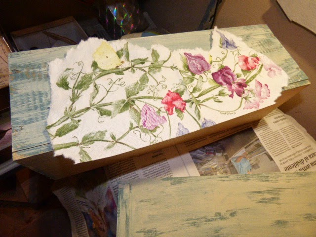 Es con decoupage y estarcidos como siempre, así que os pongo solo fotos.....