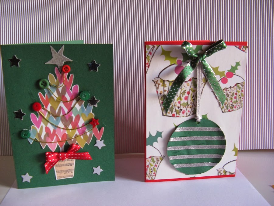 Estas tarjetas de Navidad las hice para una tienda como muestruario. Estan hechas con cartulina y lso papeles utilizados no son de scrap. Es un papel de regalos de Navidad muy bonito y como es de un gramaje mas gordo que el normal , sirven perfectamente .