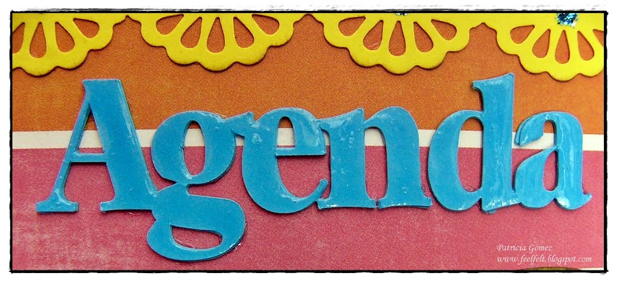 El texto Agenda, cortado con la Craft Robo, y rociado generosamente con Glossy para darle volumen