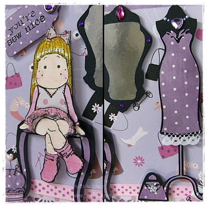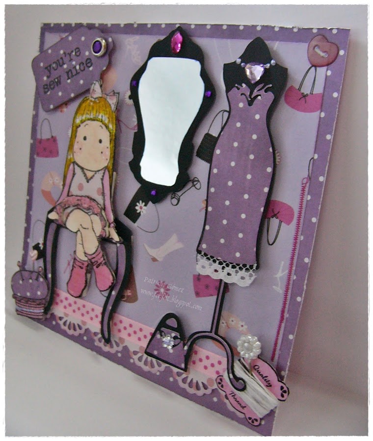 El tag es un troquel de la Big Shot, y el espejo está hecho con un papel tipo aeronfix que tenía por casa, una vez que quise hacer un vinilo casero, jeje, como aquí todo es aprovechable...
