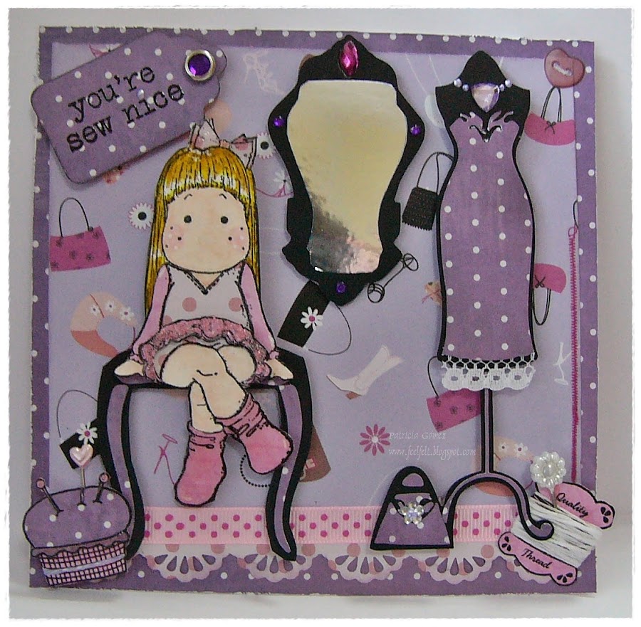 El sello de Magnolia se llama Ice Princess, y está realizado con Paperpiecing, y el otro paquete usado, ha sido Hero Arts Sew Arsty (alfiletero, bobina cartón y el texto del tag)
