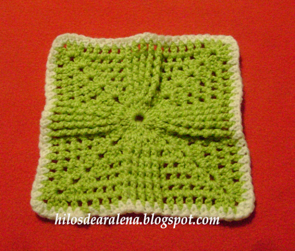 Cada cuadro lo terminé con una vuelta de medio punto o punto bajo en color hueso.