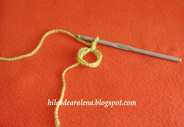 Después tiramos del extremo de la lana de la anilla para cerrarla y con punto enano terminamos la vuelta.
