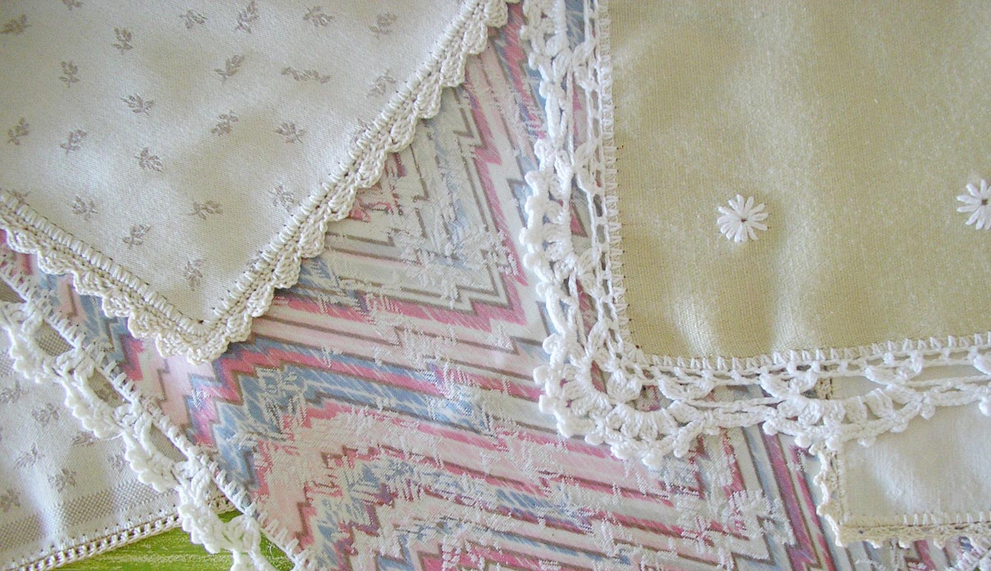 Algunos hechos con trocitos de telas diferentes. pequeños y unidos a ganchillo.