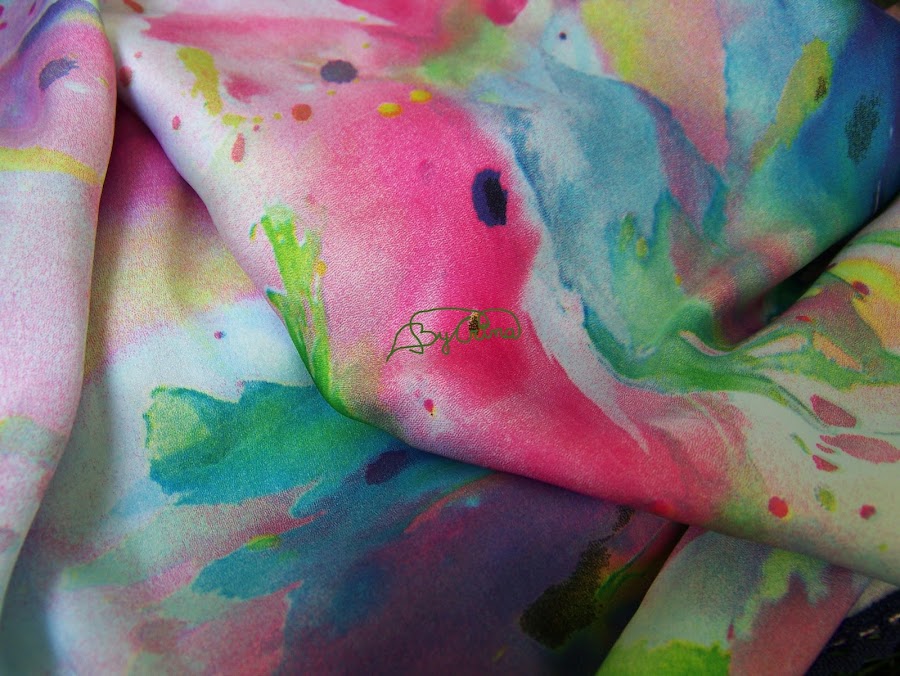 Hace unos días fui a comprar unas telas y me topé con una que me encantó!! Era un retal suelto, así que no daba para mucho, pero pensé que lo podía transformar en un pañuelo veraniego, ya que el veranito está tardando un poco en llegar y por las noches apetece taparse un poco el cuello.