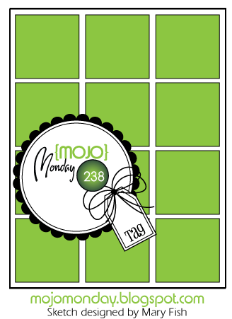 He hecho esta tarjeta siguiendo una plantilla de Mojo Monday. Tiene una estructura muy geométrica, y me gustan mucho. La plantilla era ésta:
