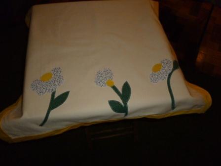La ventaja de las que llevamos poco en ésto, es que siempre hacemos cosas nuevas, vamos que estamos de estreno continuo. La verdad es que cuando lo empecé, en verano pasado, iba a ser un mantel individual, pero cuando apliqué los gatos y me pareció tan bonito: decidí seguir y hacer algo más importante. Como también estaba de estreno con el rail fence, me pareció apropiado ponerle estos bloques a ...