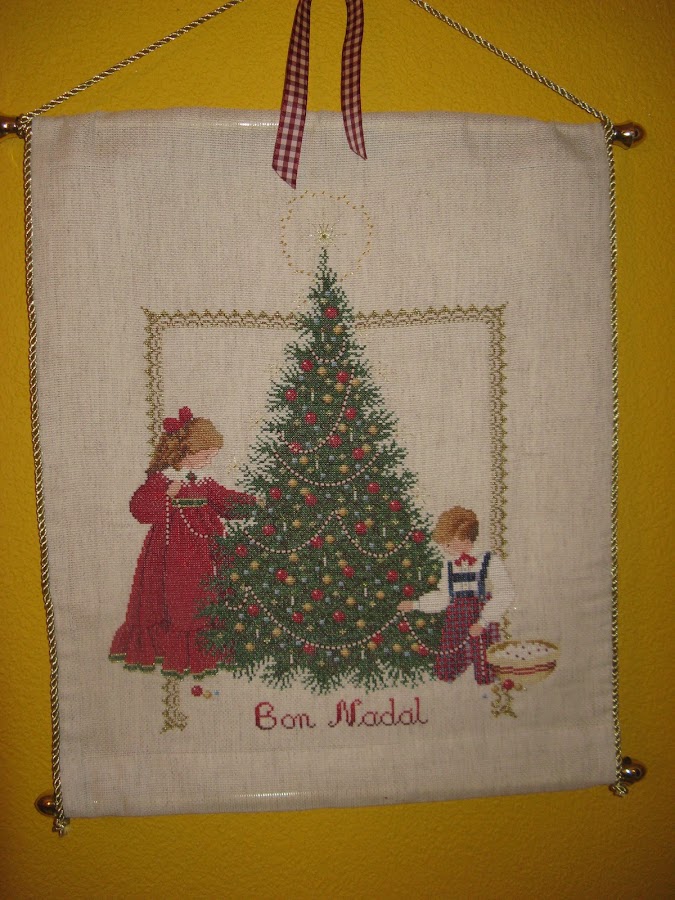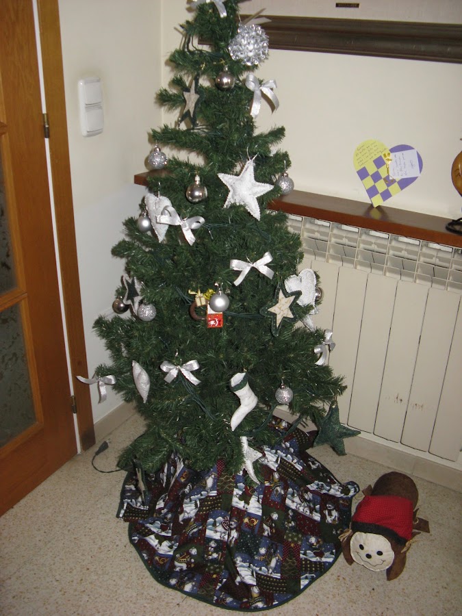 També he fet un tapete pel peu de l"arbre, peró tot i que la tela hem semblaba prou seriosa, ara veig que li sobren dibuixos, crec que m"agradaria més amb una roba mes llisa, en fin l"any vinent haure de pensar en fer-hi alguna altre cosa mes adient.