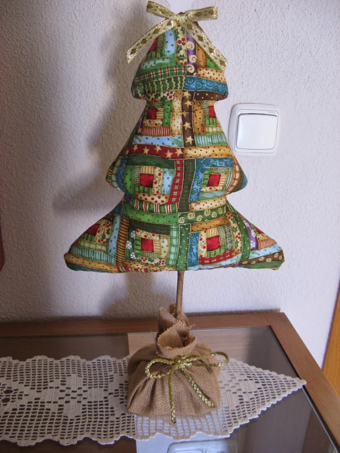 Aquest esta fet tot amb la mateixa roba. Aquesta roba es molt divertida ja que en imita un log cabin i fet amb robes de Nadal . Aquest es rapidisim, cosi , girar emplenar i adornar.