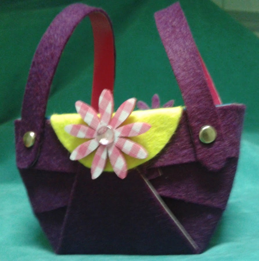 fieltro ya pegado a la cartulinaY siguiendo los pasos que indican, así es como me quedó la cestita para este nuevo reto.