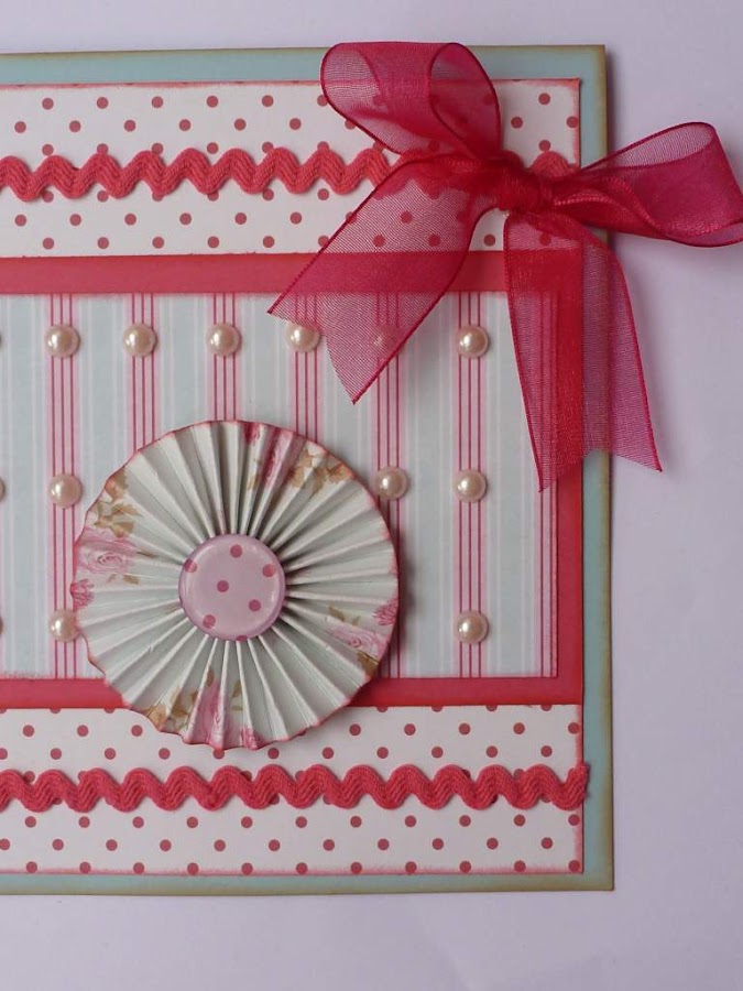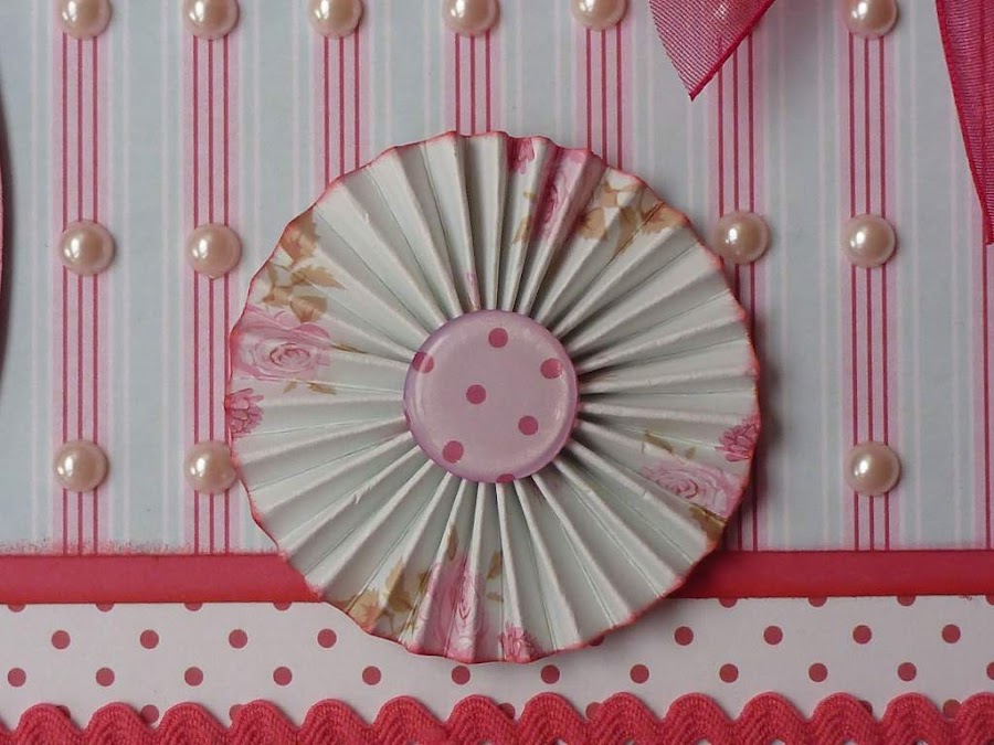 Y como adornos, unas medias perlas, ondulina granate y lazo de raso también granate, cortesía de Ovillar, a la que le estoy muy agradecida porque me envió unas preciosidades que ya van tomando forma en mis trabajos.