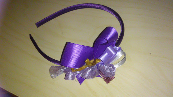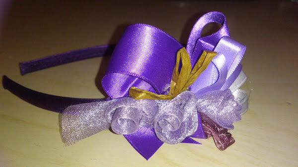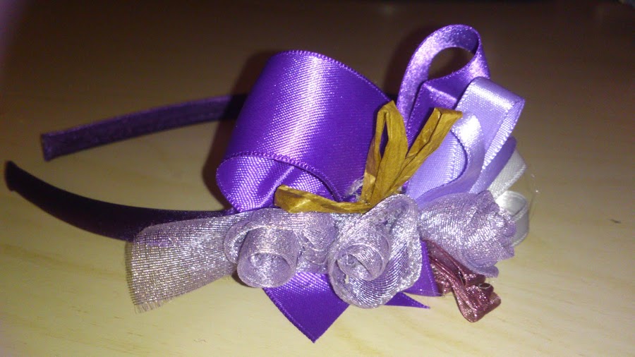 diadema de organza, rafia y seda