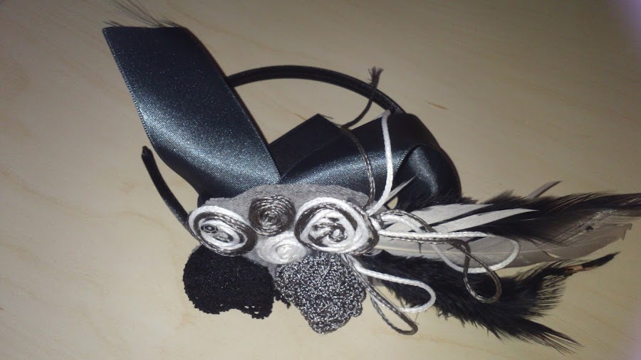 Teníamos muchas ganas de probar a hacer cosas nuevas como diademas para novias, invitados etc...y justo una clienta me pide una en tonos grises y negros haciendo juego con su vestido, os dejo lo que cree