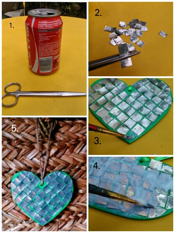 -Recortar la lata con tijeras en cuadrados similares. Hacerlo con guantes porque la lata corta!