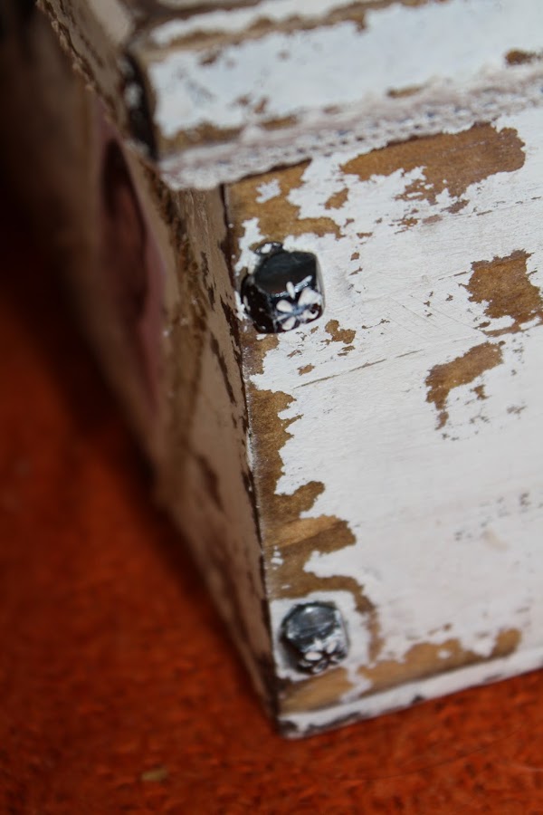 Los herrajes..........¡¡jue que cruz¡¡ (si Tata, si......¡¡pa"habernos ""matoooooo""¡¡)........primero los limpie y los deje relucientes........y ¡¡ondia¡¡ cuando los vi no me gustaban nada, nada, nadaaaaaa.........así que volví pasarles, con el dedito y un trapo un poco de pintura, que se fue metiendo en las ranuras he hizo que resaltaran mucho mas, y quedaran con ese aspecto envejecido.