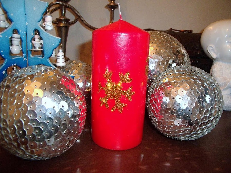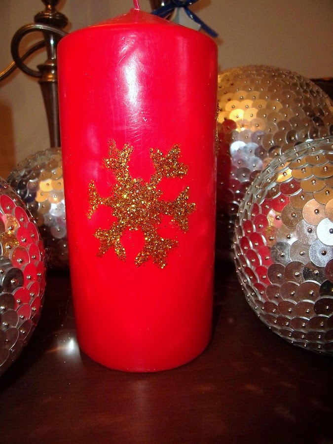 Materiales: una vela, pegamento de cualquier tipo, una plantilla que podeis hacer vosotros mismos y que os explico en el vídeo, purpurina y celo para sujetar la plantilla.