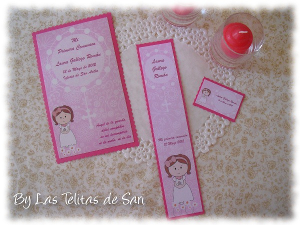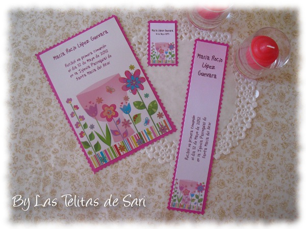 Empezaremos por enseñaros las estampitas, puntos de libro y tarjetitas de comunión. Espero que os gusten, estan hechas con todo nuestro cariño. A ver que os parecen.