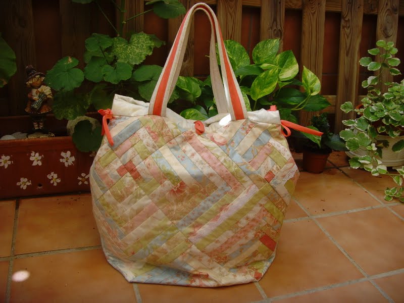 Así que ando terminando muuuuuy lentamente las labores pendientes, pero una de ellas que ya os puedo mostrar es mi bolsa de log cabin para el verano: