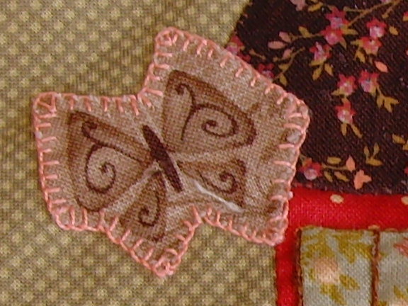 Las maripositas que me encantaron las saqué de una telita que ya las traía pintadas. Sólo tuve que recortarlas y hacerles el festón.