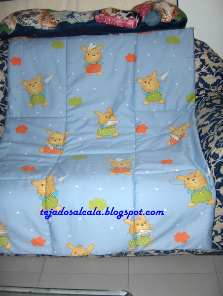 Un cojín manta para un bebe muy esperado y especial que solo con verle la carita se han olvidado todos los problemas que ha habido hasta su llegada.