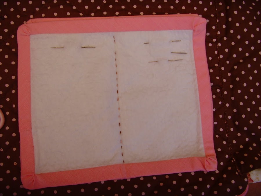 Así que primero confecioné una superficie rectangular acolchándola con su tela delantera y trasera.
