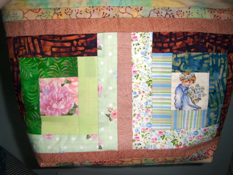 He utilizados menos dos tiras de la cabaña todo telas batik, me encanta trabajar con ellas aunke hay que tener mucho cuidado si se hace algo a maquina con ellas porque como te descuides se fruncen. En este caso lo he hecho todo a mano, exceptuando las uniones de tiras para las asas.