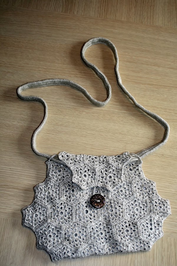 Y así, sucesivamente, en mi bolso empleé 49 hexágonos y para el que le hice a Nuria necesité 38, porque no los he hecho exactamente iguales.