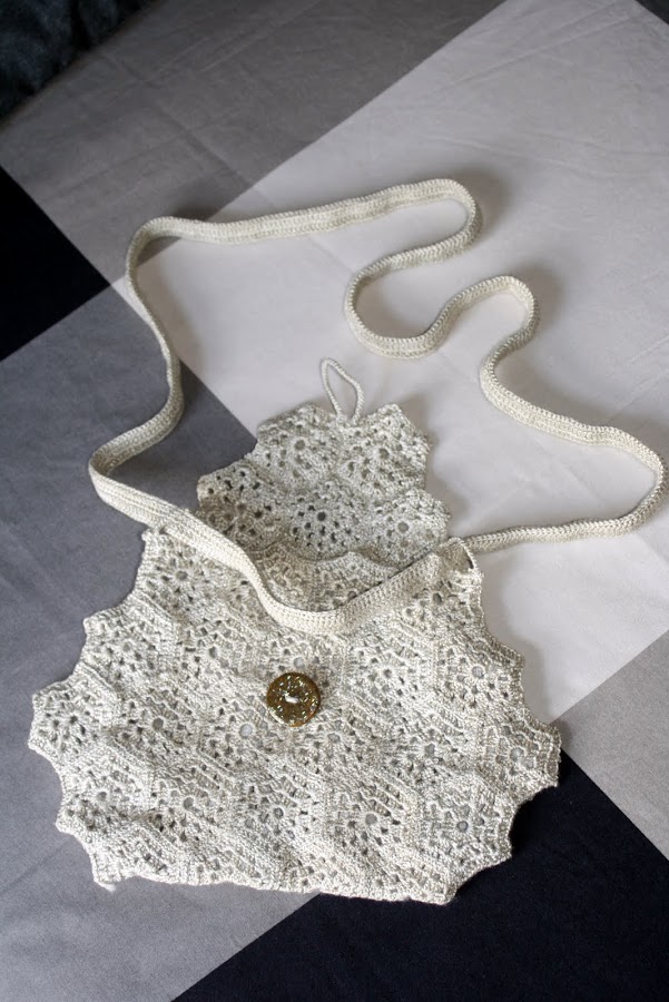 En esta última foto se intuye algo del forro que le puse en el interior a los bolsos para que nada se pueda perder entre las rendijas del ganchillo. Además, así pude hacerle un bolsillo interior en el que guardar el teléfono y las llaves (por ejemplo). Para hacerlo utilicé un retal que tenía en casa y que me pareció muy adecuado.