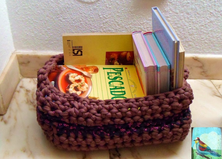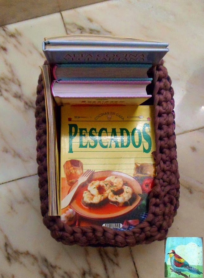 Como os comenté en la entrada anterior, además de la alfombra he hecho un revistero a juego, para ordenar unas cuantas revistas y libros de cocina que tenía amontonados en el escritorio.