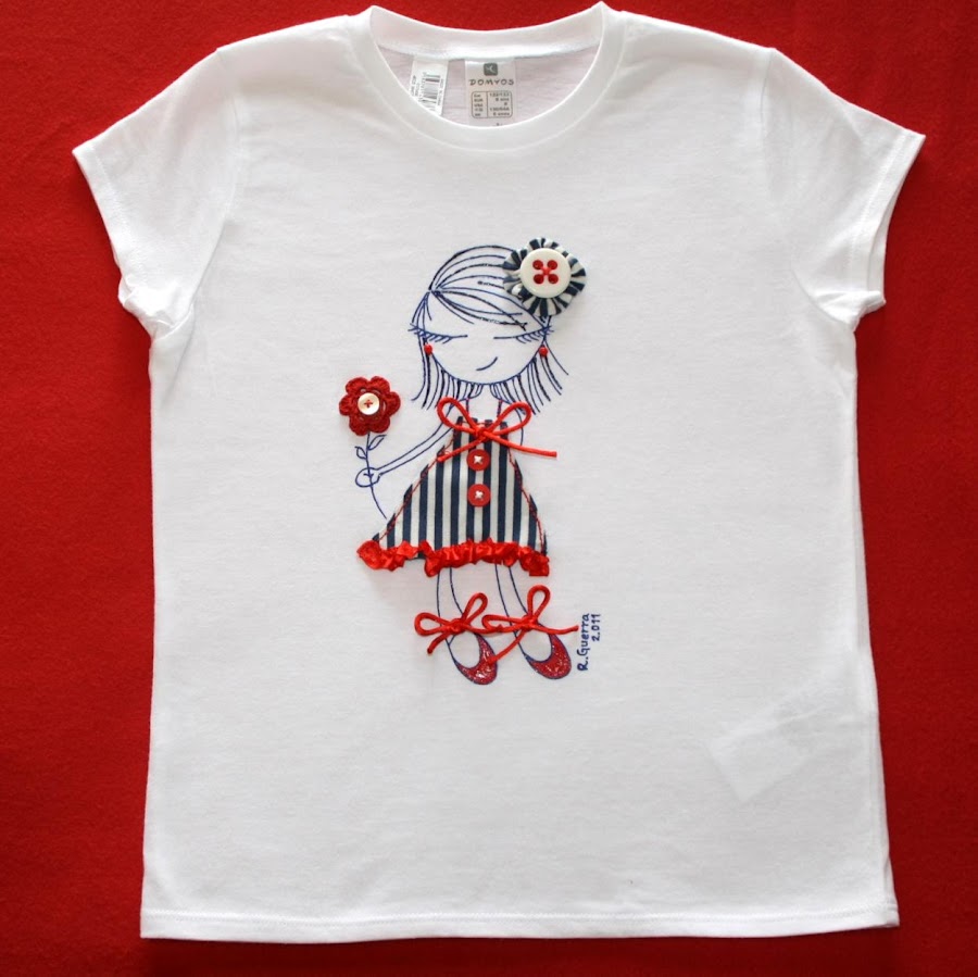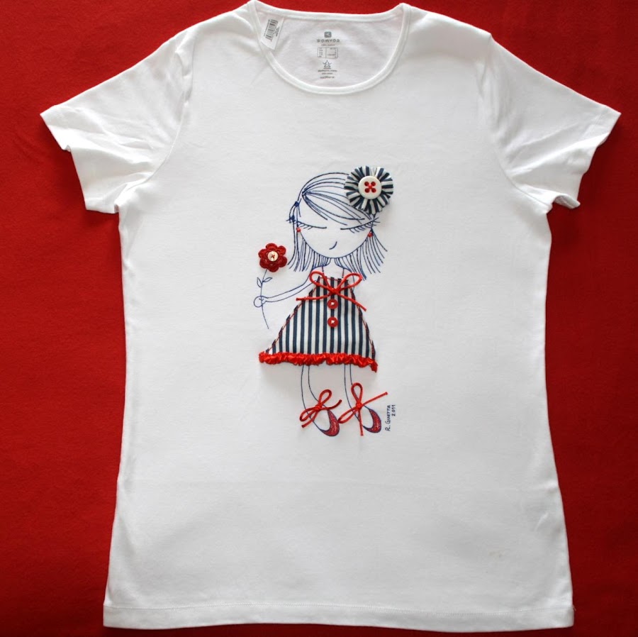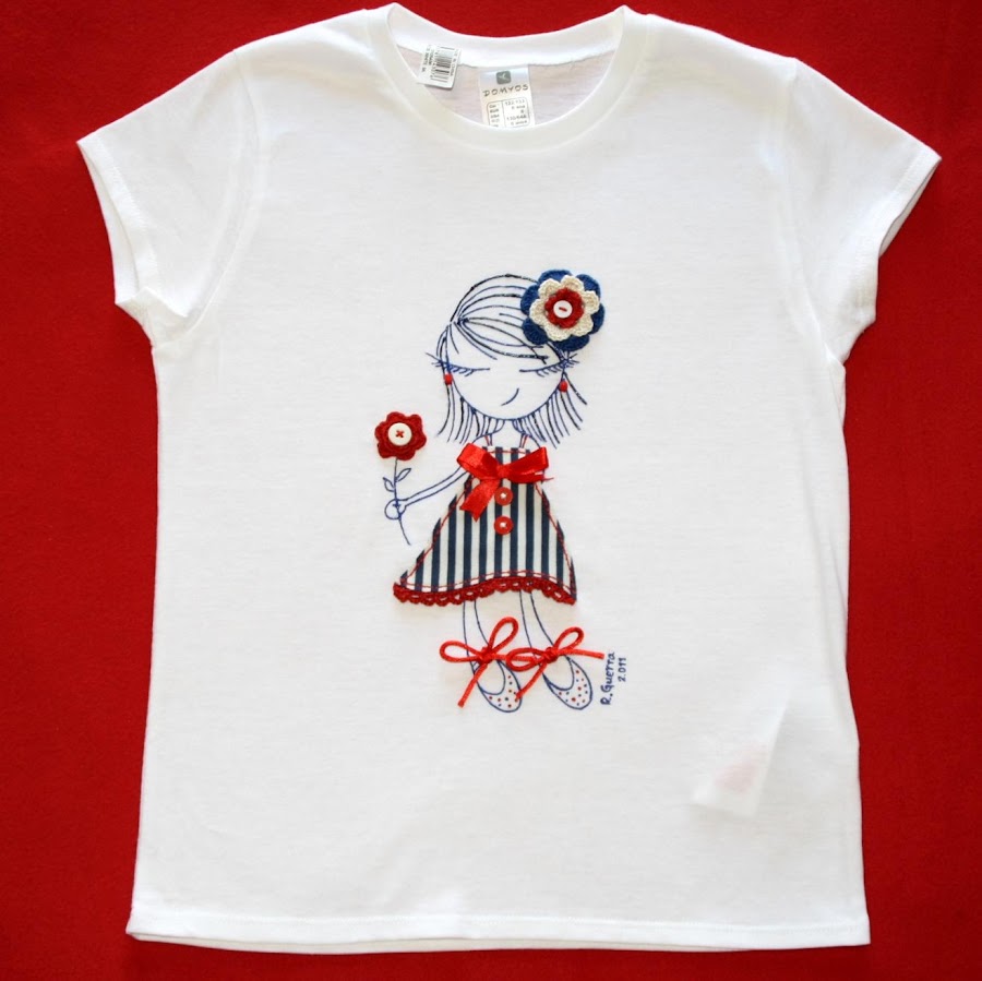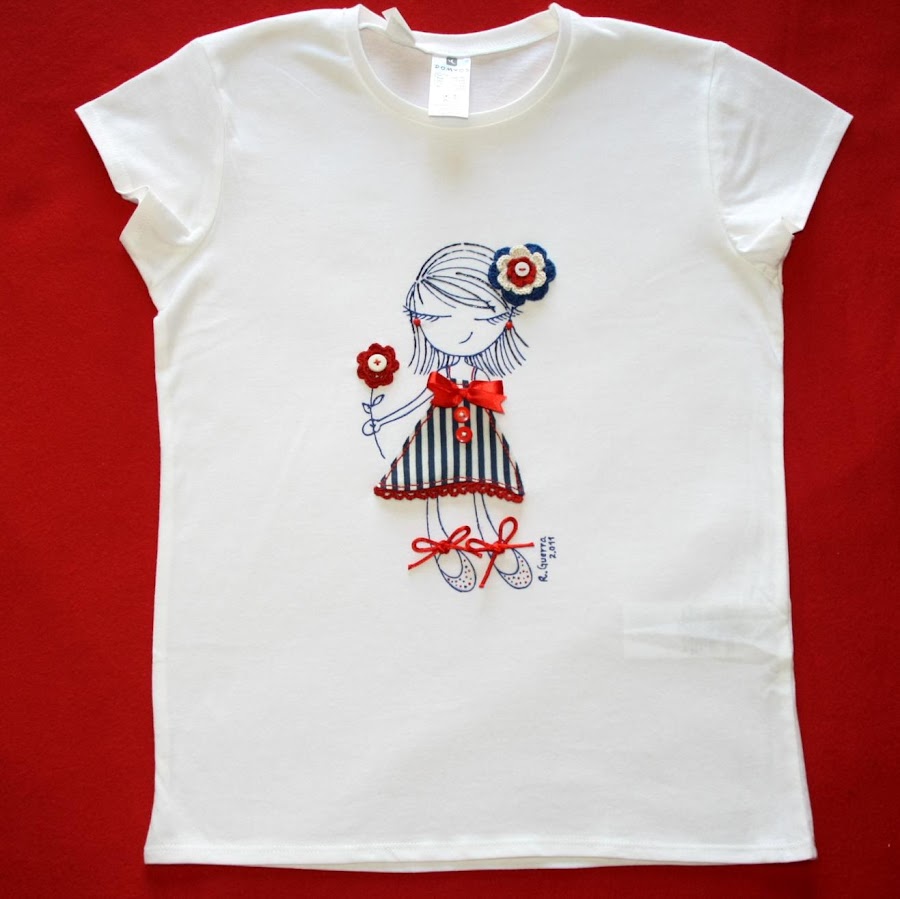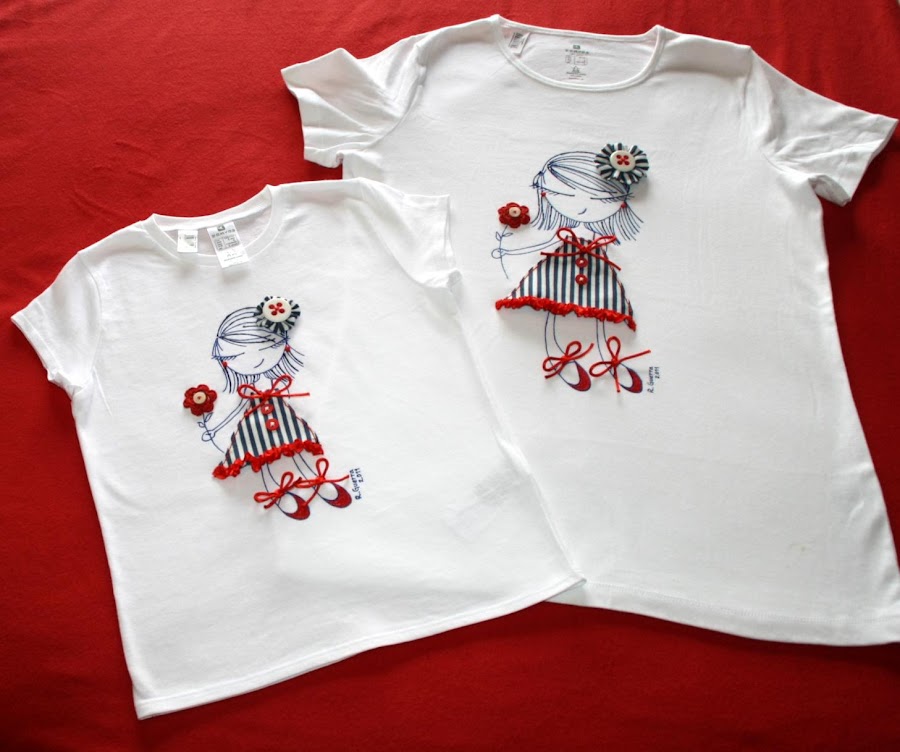Hacía ya muchos días que no publicaba nada por aquí, pero es que he estado ocupadísima con unos encargos de camisetas que me hicieron todos juntos de golpe. Varias mamás del cole de los niños, vieron unas camisetas que llevé porque me habían hecho un encargo anterior y a todos se les antojó que les hiciese unas Ro-ros para ir a juego las mamás y las niñas. Así que con esto estoy liada. Aún no las he acabado todas, pero voy a poner un ejemplo de las que ya tengo hechas. Tengo que decir que como ya he comentado en otras ocasiones, de todas las cosas distintas que hago, lo que más llama la atención son las camisetas. Dentro de ellas, la ganadora, sin ningún tipo de duda, ha sido el modelo Ro-ro. Pero de todas ellas, ha quedado claro que la que más éxito está teniendo es la Ro-ro marinera. Será por aquello de que ya se acerca el veranito y ya sólo pensamos en la playa ;-).