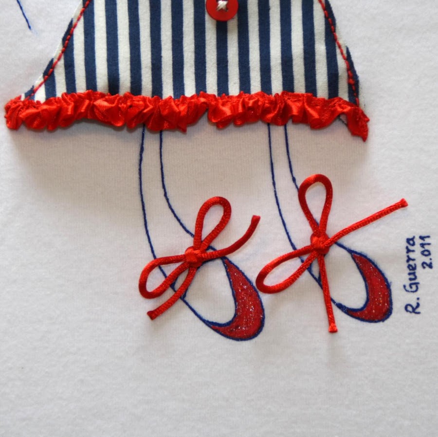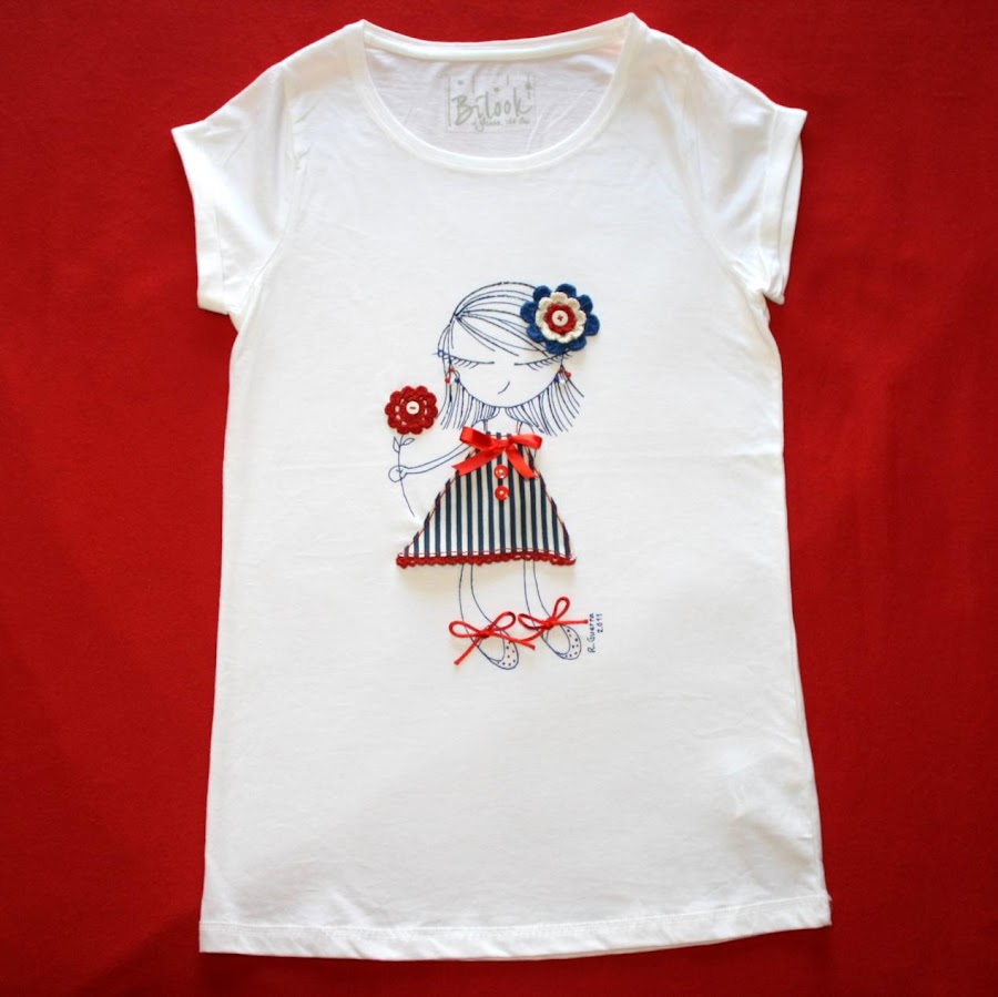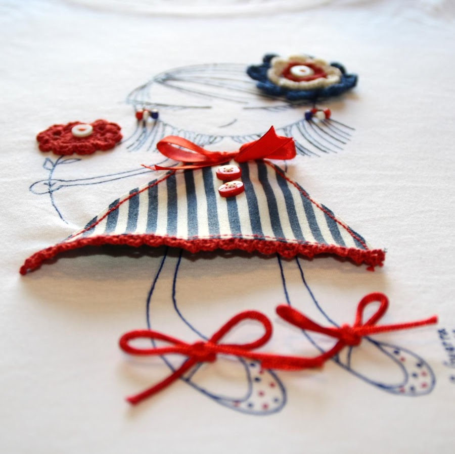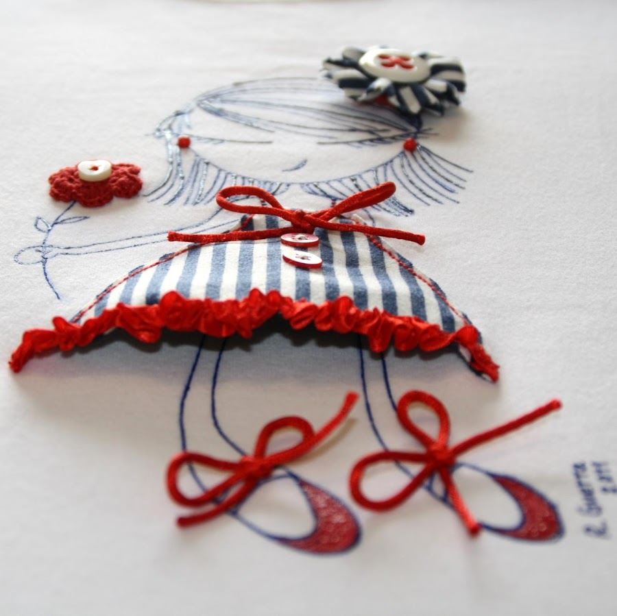 Hacía ya muchos días que no publicaba nada por aquí, pero es que he estado ocupadísima con unos encargos de camisetas que me hicieron todos juntos de golpe. Varias mamás del cole de los niños, vieron unas camisetas que llevé porque me habían hecho un encargo anterior y a todos se les antojó que les hiciese unas Ro-ros para ir a juego las mamás y las niñas. Así que con esto estoy liada. Aún no las he acabado todas, pero voy a poner un ejemplo de las que ya tengo hechas. Tengo que decir que como ya he comentado en otras ocasiones, de todas las cosas distintas que hago, lo que más llama la atención son las camisetas. Dentro de ellas, la ganadora, sin ningún tipo de duda, ha sido el modelo Ro-ro. Pero de todas ellas, ha quedado claro que la que más éxito está teniendo es la Ro-ro marinera. Será por aquello de que ya se acerca el veranito y ya sólo pensamos en la playa ;-).