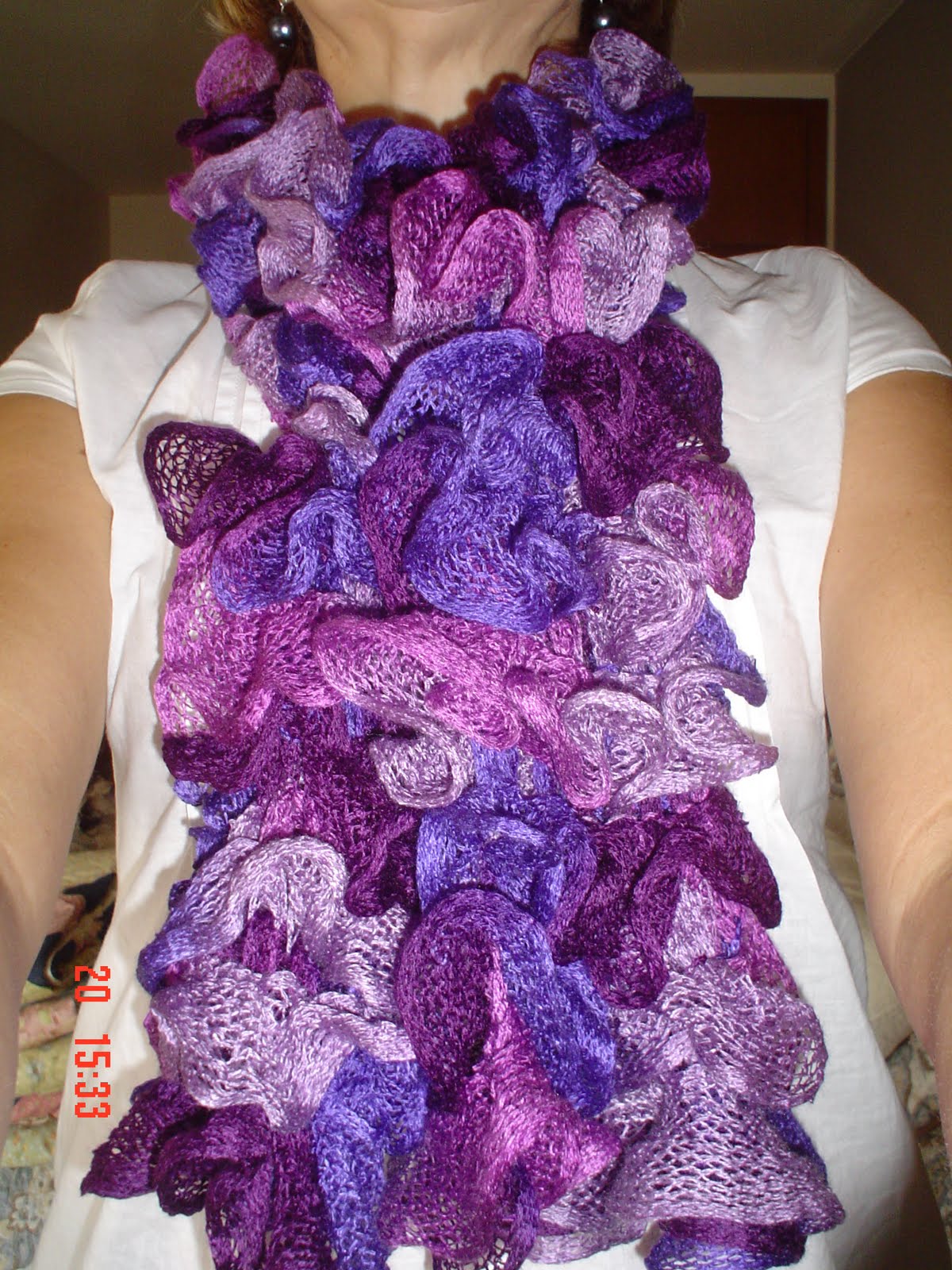 El otoño se acerca y hay que empezar a prepararse, nada mejor que un foulard , una bufanda para proteger nuestros cuellos . Como os habeis fijado soy una apasionada de cualquier cosa que se pueda poner en el cuello ,igual que mi amiga yolanda de hecho a partir de ahora es muy raro no verme con un foulard en mi cuello, asi que decubri estas nuevas lanas para bufandas de esta temporada y me hice una de cada tipo. He de decir que me gusta mas como se trabaja y como queda la primera, asi que si me decido por algun otro color, sera como la primera.