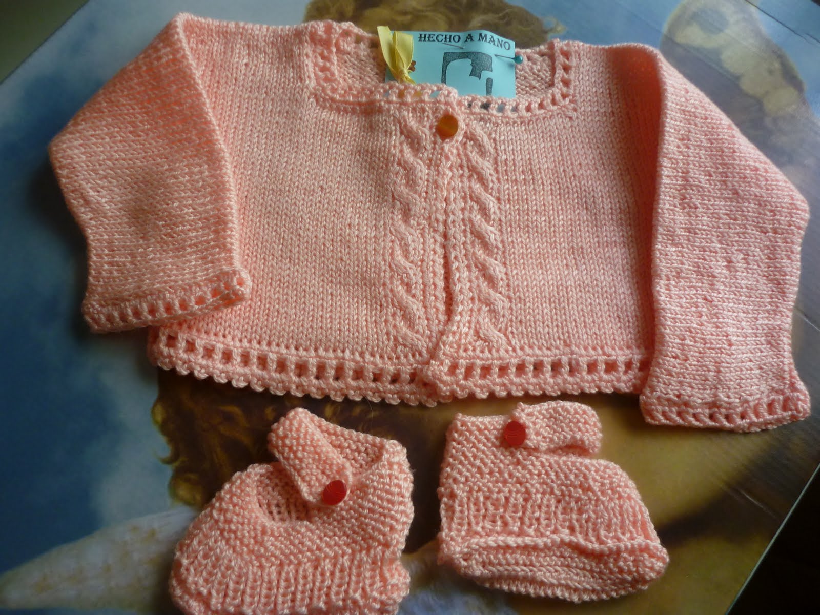 Y lo otro que terminé es más específico para nenas. Es una chaqueta de lanita para bebé en blanco roto y perlé rosa. Reversible: se puede atar delante o detrás. Se ajusta a los bracitos y a la cintura con lazos a juego. Zapato-botita a juego. Aunque la talla es de 0 a 2 meses, creo que es para nenas más grandes. Precios: ...
