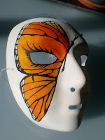 La chica con la que voy me dijo que en las tiendas de disfraces las vendían blancas para luego pintarlas. Y el resultado es este. Sé que no es ganchillo pero me apetecía mucho compartirlo, por si alguien se anima.