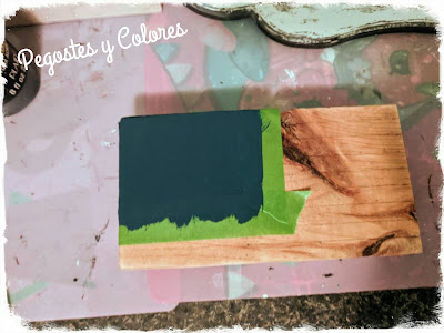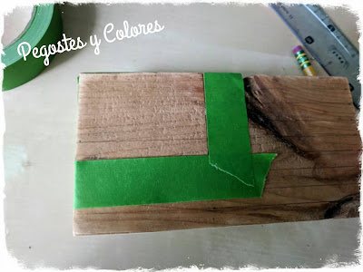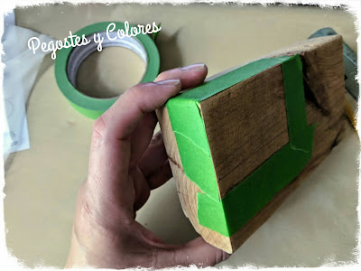 2.- Protegi la zona donde va el fondo azul con cinta de pintor, al frente y lados del bloque de madera.