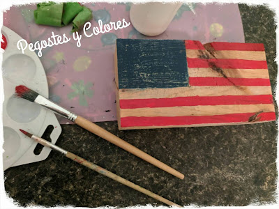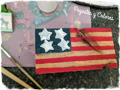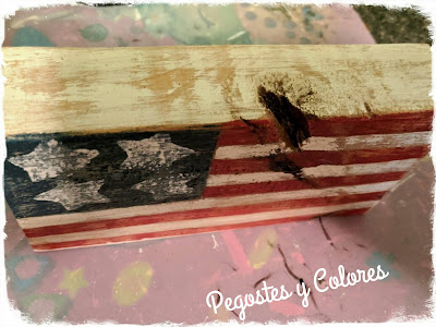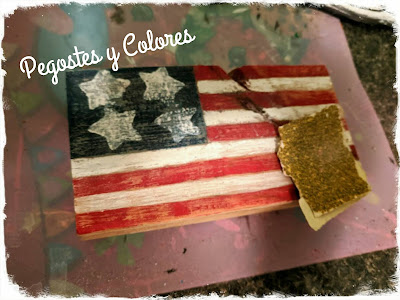 1.- Desde el principio tuve claro que no iba a hacer la bandera exactamente como es, solo la sugerencia de ella, porque no tenia ni estenciles ni sellos con estrellas del tamaño pequeño como para hacer las 50 que representa a los estados del país.