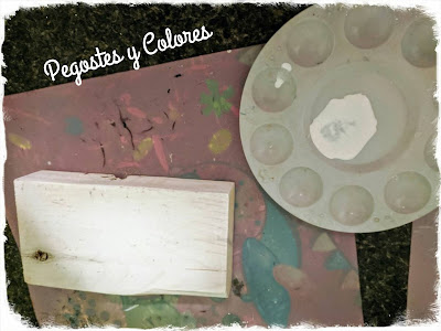 7.- Pintamos el resto de los lados del bloque de blanco, pero rebaje la pintura con agua un poco, queria que quedara muy ligera y que se alcanzaran a ver la vetas de madera.