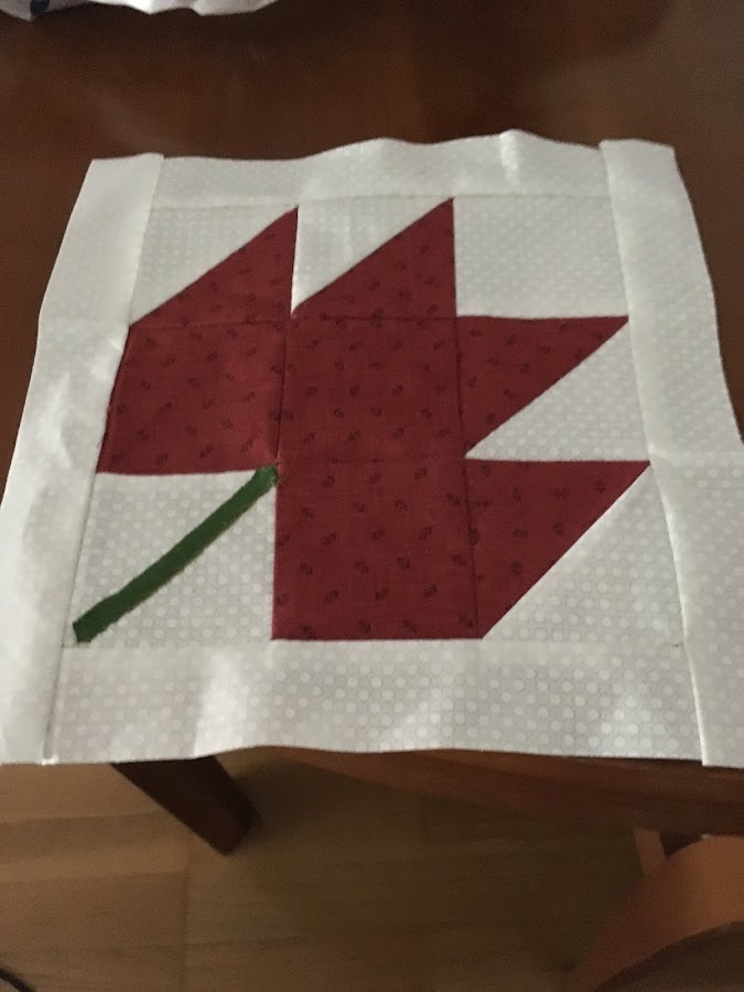 Aqui ya tenemos el bloque acabado con los bordes y luego la pequeña tira que hay que poner en verde para el tallo.