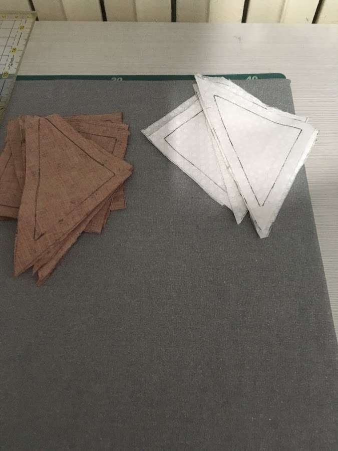 Primero dibujaremos los bloques en la tela con los patrones que ya hicimos anteriormente con un rotulador pilot frixion que se borran luego con la plancha.