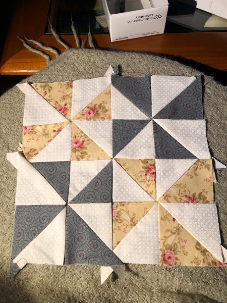 Para hacer este bloque utilizaremos cuatro cuadrados de 8x8 cm en tela clara, ocho triangulos de 4x8 cm en una tela que elijamos y ocho triangulos de 4x8 cm a en tela clara, que esta tela clara es para el fondo y para finalizar un cuadrado de 8x8 cm rn otra tela elegida.