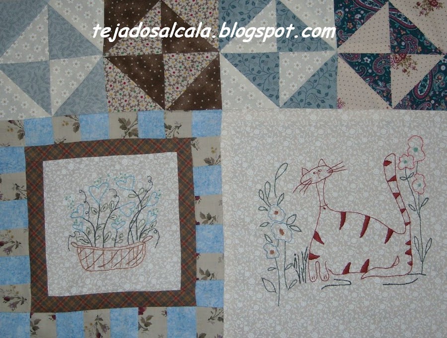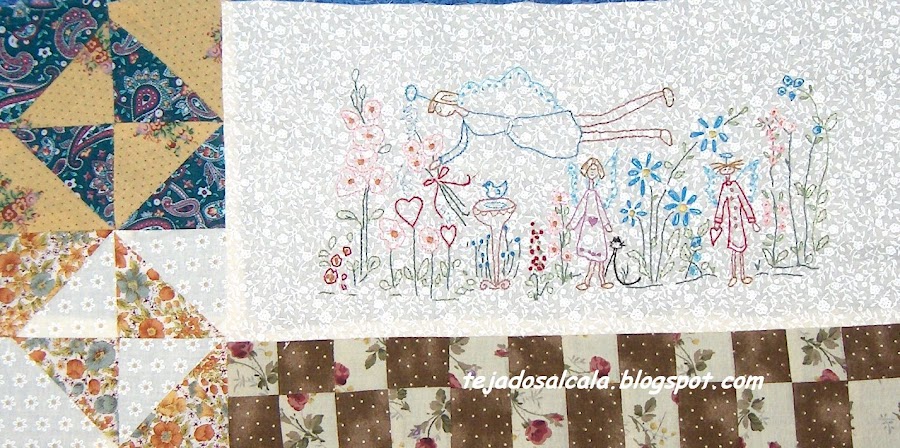 Lleva bordados combinados con scrap. Tengo que reconocer que me esta costando hacer los bordaditos con esas figuras tan pequeñitas Los ultimos bloques corresponden al Sampler de Esperanza. Ella se ha marchado de vacaciones, pero nos ha pedido que pongamos al día nuestros bloques. Y aquí estan los que me faltaban, que a pesar de tenerlos hace tiempo no encontraba el momento de enseñarlos.