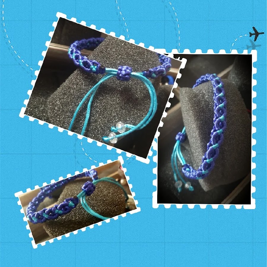 Para realizar este proyecto he usado cola de ratón en dos colores, dos hebras de color azul oscuro y dos de azul claro todas ellas de 80cm.