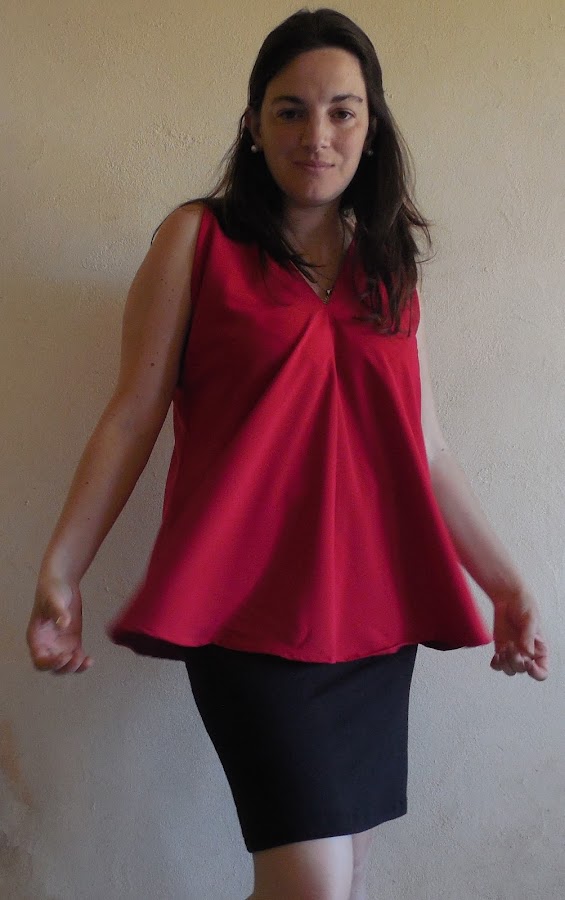 Básicamente son 3 rectángulos de tela de punto, 3 costuras, 10 minutos en la overlock y un dobladillo...