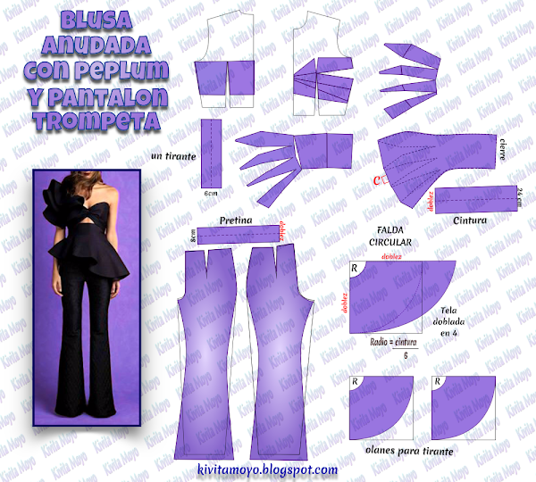 Este modelo se puede armar tambien como un enterizo integrando las dos partes. En ese caso el pantalon debe llevar el cierre en la parte trasera.