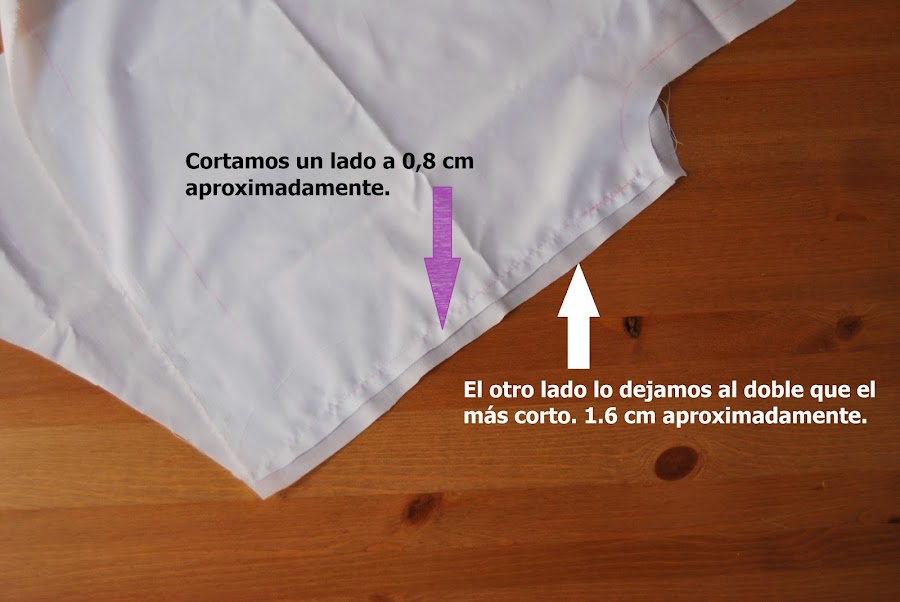 No sobrehilamos, si no que hacemos un doble pespunte para que quede más bonito, remetiendo los laterales y los hombros. Así: