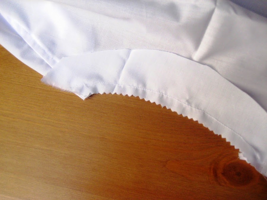 Cortamos las vistas de mangas y cuello y las cosemos.