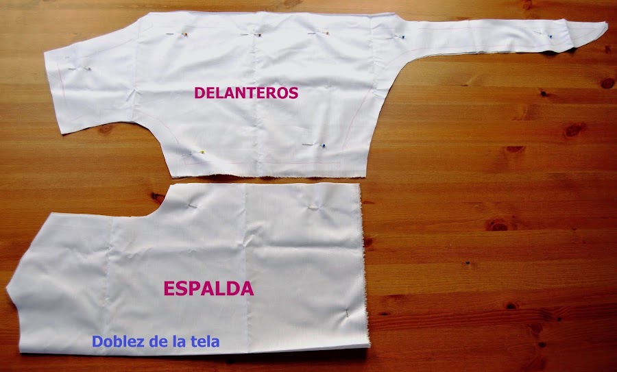 La espalda se corta sobre el doblez de la tela, para que vaya en una sola pieza.