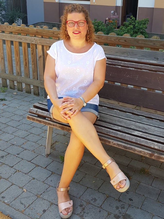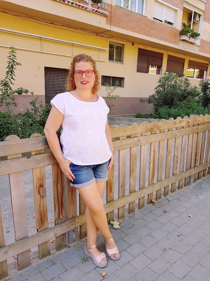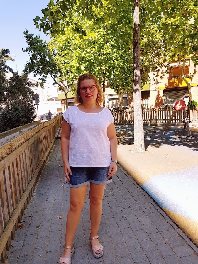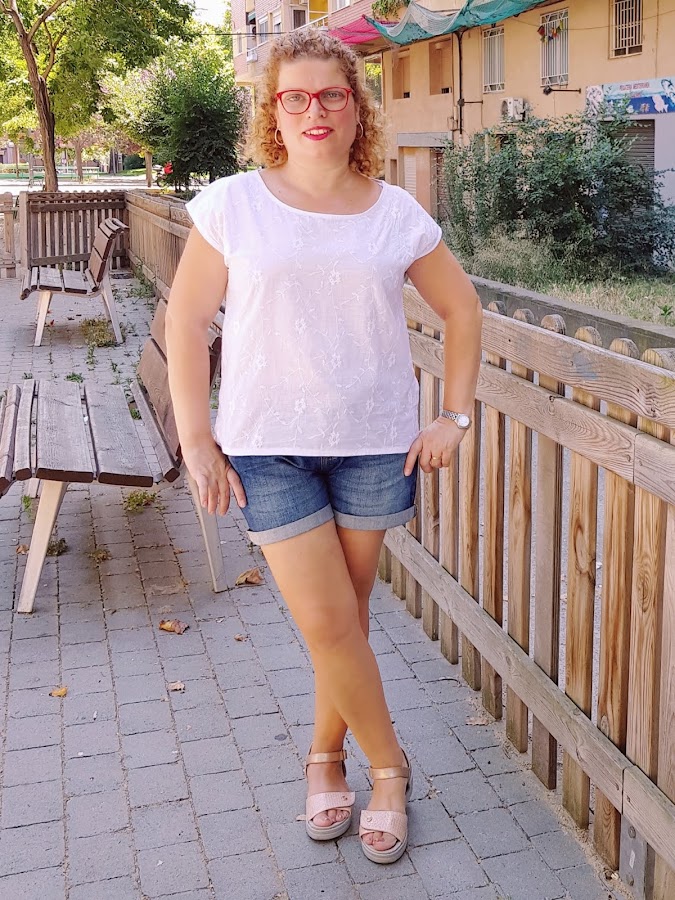 El modelo de la blusa es un clasico en este blog y es el modelo con el que me siento mas comoda lleva cuello redondo , manga caida y es mas bien anchito .
