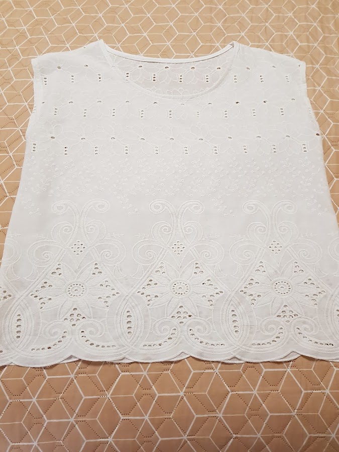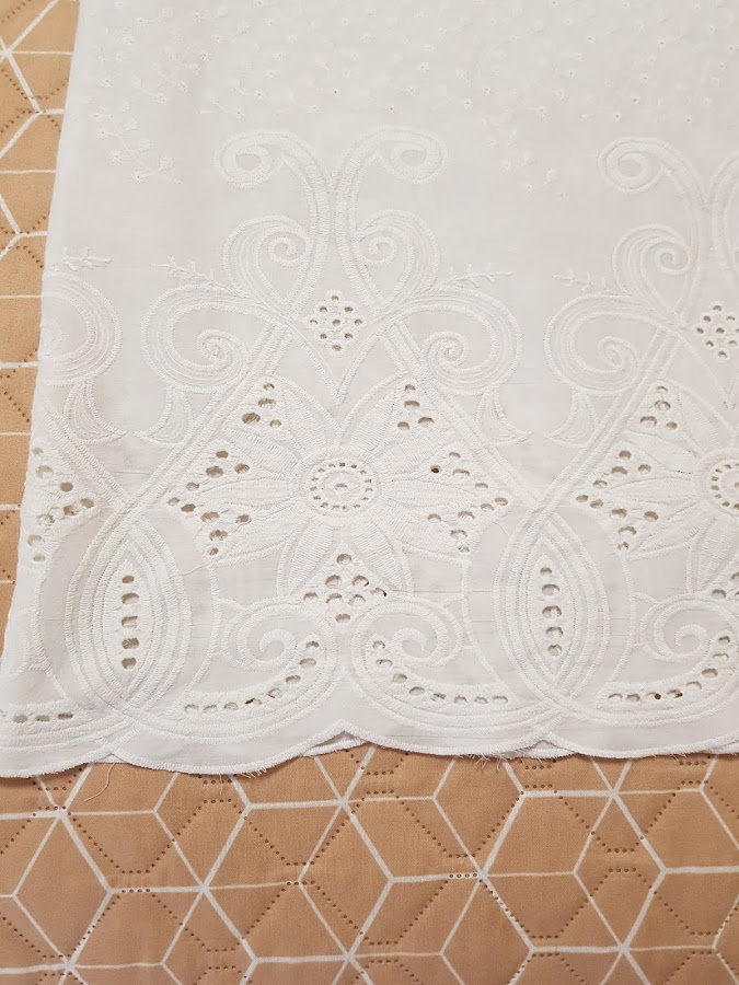 En una de mis últimas compras de telas para coser este verano , compre esta tela tan bonita de bordados y como a mi desde siempre me han gustado mucho los tejidos bordados y casi nunca encuentro pues cuando vi este tejido me lleve unos metros a casa .